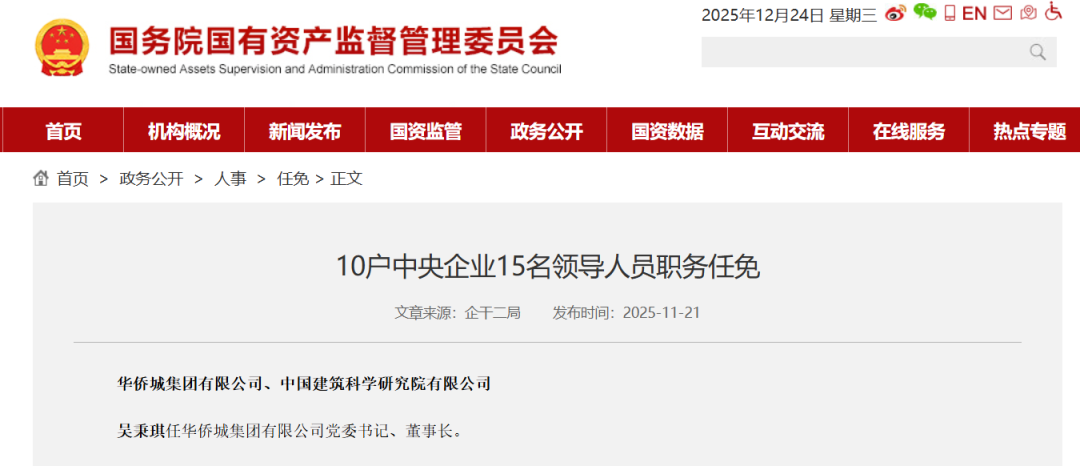 2025年11月,任华侨城集团有限公司党委书记、董事长。