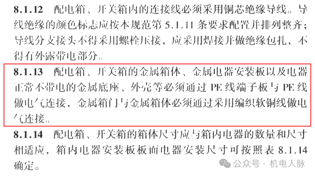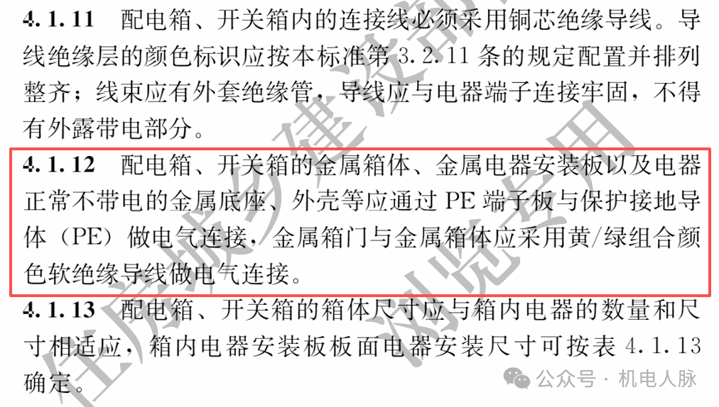 此外GB 50303-2015《建筑电气工程施工质量验收规范》的5.1.1条也规定,箱门跨接应选用截面积不小于4mm²的黄绿绝缘铜芯软导线。