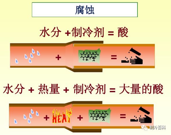 • 腐蚀金属和破坏冷冻油:水与制冷剂、金属发生化学反应,产生酸性物质,腐蚀压缩机和管路,导致压缩机“咬缸”或“卡缸”。同时,冷冻油被乳化变质,润滑性能下降,进一步加剧压缩机磨损。