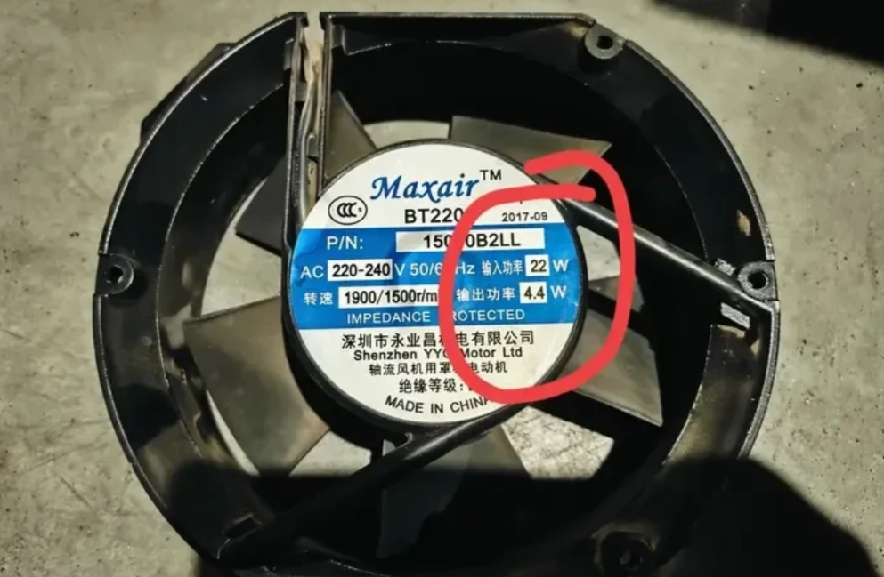 干了八年的电工,完全想不通,风扇输入功率22W,而输出功率却是4.4W,啥情况?