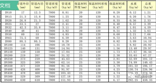 1)管道型号、直径、保温