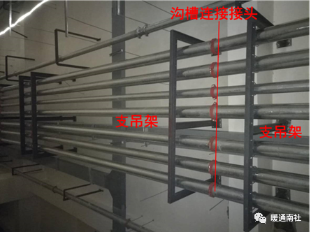 (6)沟槽连接的管道(主要为消防水管),水平管道接头和管件两侧应设置支吊架,支吊架与接头的间距不宜小于150mm,且不宜大于300mm。GB50738-20117.3.7