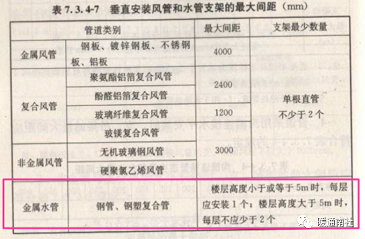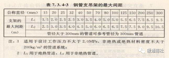 (4)支吊架安装间距限值: