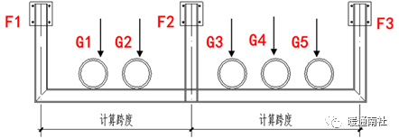 G1=管道自重+满管水重+保温层重+支吊架自重(KN/m)