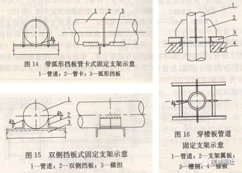 (7)设有补偿器的管道应设置固定支架和导向支架,其形式和位置应符合设计要求。GB50738-20117.3.7