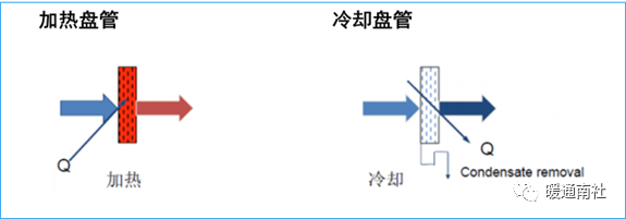 冷却盘管:一系列旋管组成的传热装置,以冷冻液体或冷冻剂为冷却介质,降低空气气流的显热和可能的潜热(通过使水蒸气冷凝)。