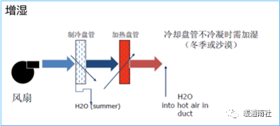 除湿:加热、冷却盘管协调运行,先降温除水分,再升温确保室内温度,降低相对湿度。