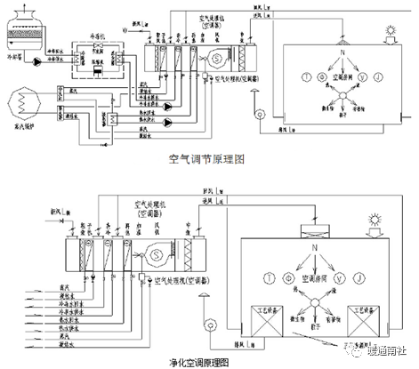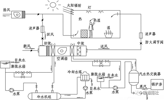 主要为空气处理装置提供冷、热源的辅助设施,通常包括: