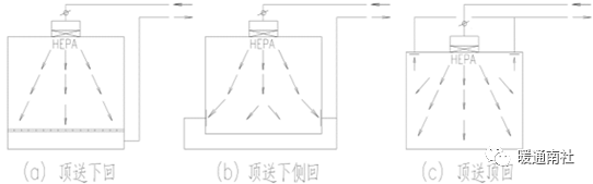洁净室通常有两者气流分布方式:稀释送风和置换送风。