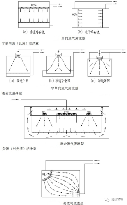 常见的气流:单向流、非单向流、混合流、矢流(对角流)。