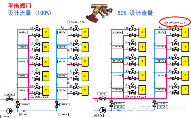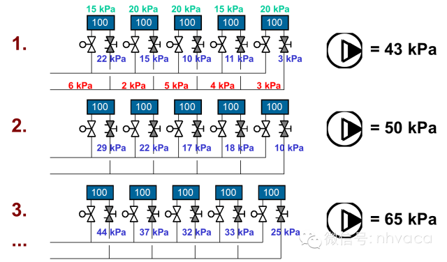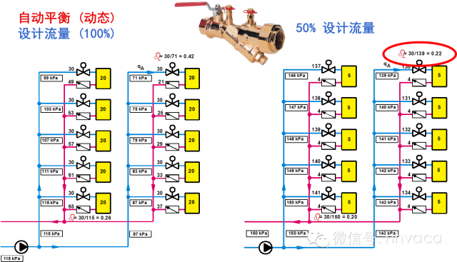 2.补偿法:专门为设有平衡阀的系统而设计,系统压降最优;