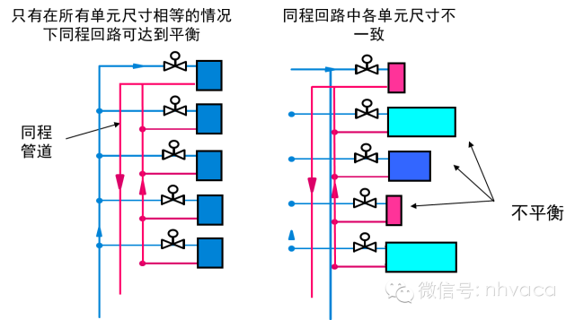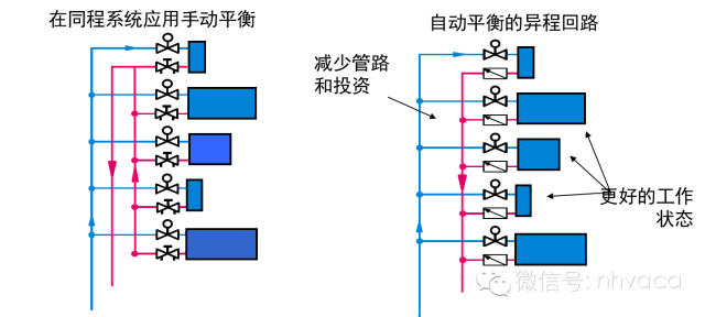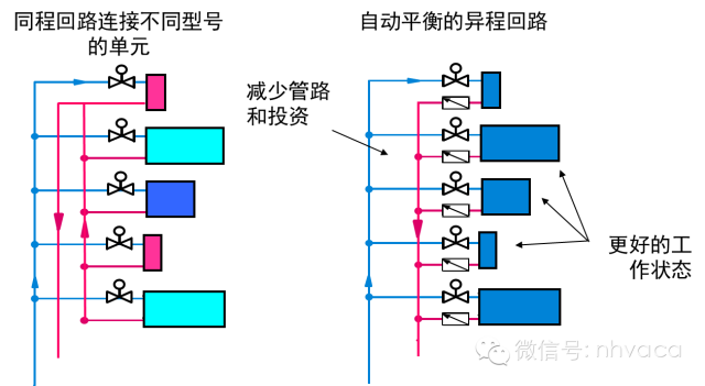 对于需要安装同程管道的同程系统,因为系统的不平衡较大的单元将得到更多的流量。
