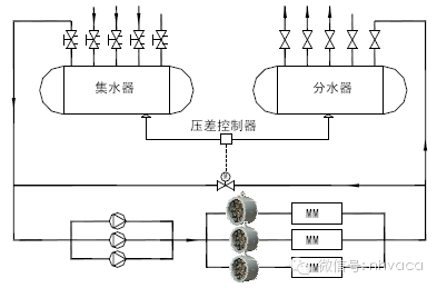 定流量是指系统中不含任何动态阀门,主要用于末端设备无须通过流量来调节的系统,如风机盘官采用三速开关,空调箱采用变风量调节温度的空调系统以及系统要求较低,只需补偿器调节供暖水温即可满足需要的采暖系统。