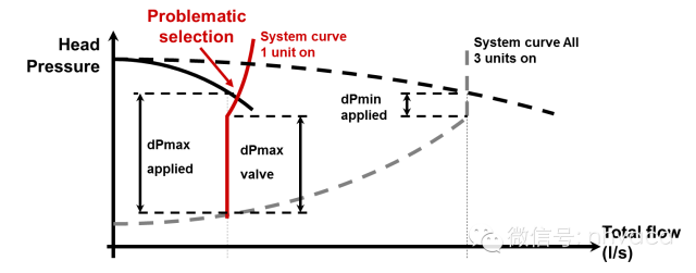 在较低的系统要求下, 只有很少的流量和管道摩擦力,导致作用于控制阀的压差增大。