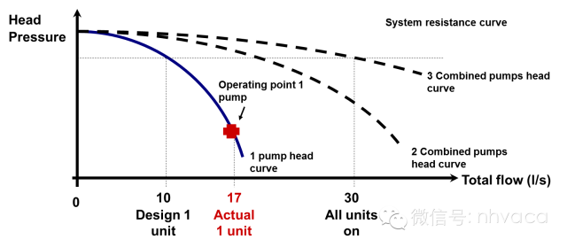 对并联运行的定流量水泵,总流量由总的阻力决定- 包括管道。