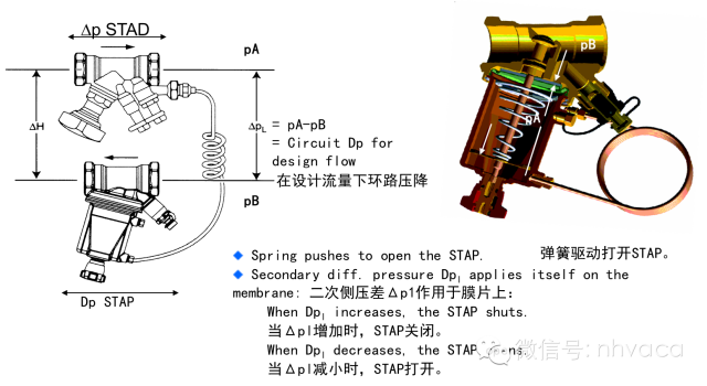 当泵的工作数量变化时,自动平衡阀将根据系统阻力的变化调整以保持设计流量。