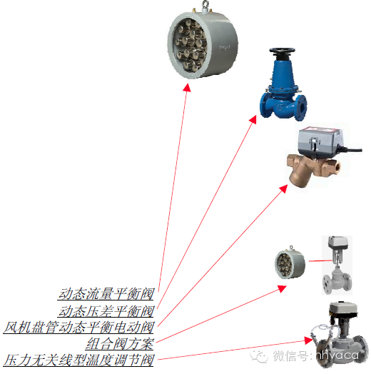 动态平衡电动二通阀:风机盘管供水管组合阀(电动调节阀+动态流量平衡阀):空调箱、空气处理机组、新风机组等处。