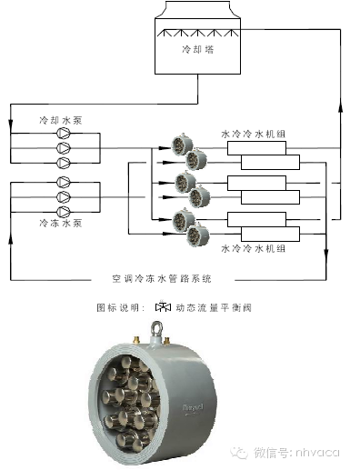 1、安装位置:在三台水冷冷水机组的冷冻水、冷却水进水管分别安装动态流量平衡阀;