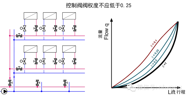 现实条件下,两通阀的尺寸选择过大以及根据系统要求流量变化而变化的压差导致阀权度远达不到要求。