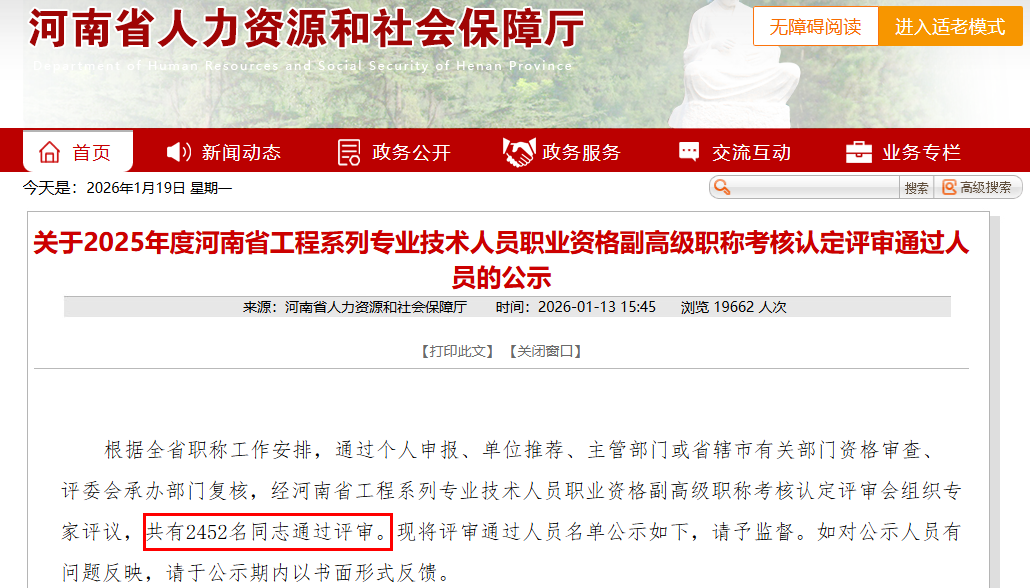 近日,河南省人社厅发布关于2025年度河南省工程系列专业技术人员职业资格副高级职称考核认定评审通过人员的公示。