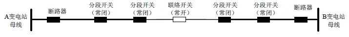 自不同变电站或变电站不同母线段引出,配有分段开关,并在线路末端联络的两回架空线路构成多分段单联络电网结构,如下图所示。