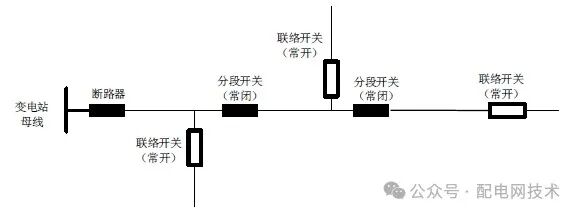 自变电站母线引出,仅配有分段开关的架空线路构成辐射式电网结构,如下图所示。