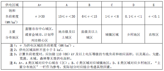 适用D、E类10kV配电网供电区域。供电区域划分按下表划分,也可适当调整。