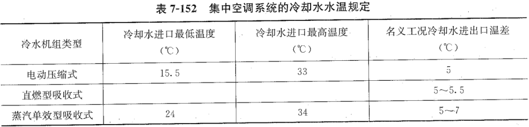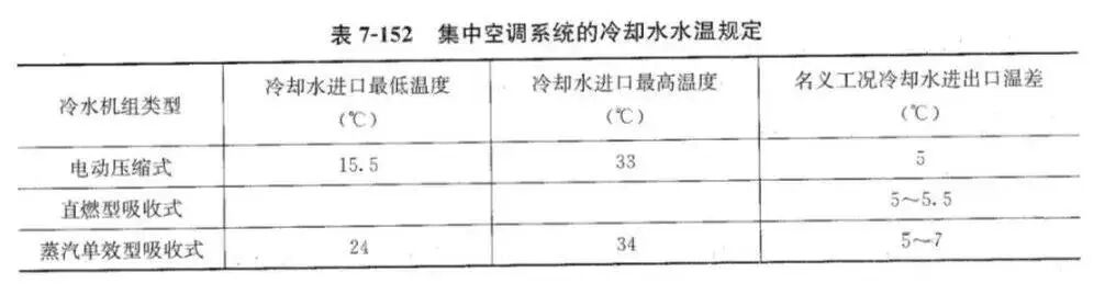 集中空调系统的冷却水水温宜符合下表的规定。