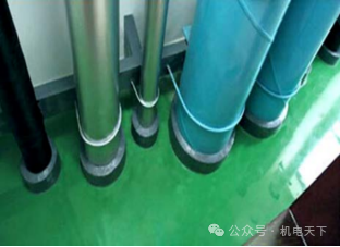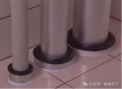 3.4 补洞砼浇筑完成后其余间隙填塞石棉绳,套管顶部打密封胶密封,密封胶要求与 套管上部平齐,胶缝要求均匀,套管底部安装饰圈,板面上外露套管刷黑色或灰色油漆。