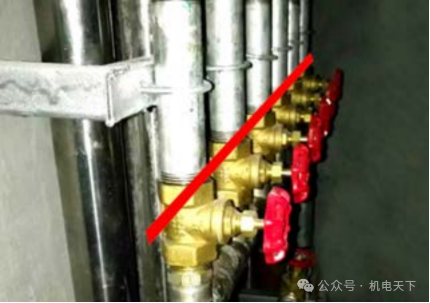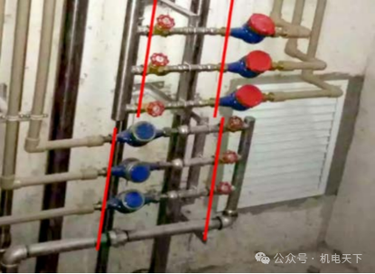 4)支管(即:水表下游管段)宜平行等距布置,避免交叉;如支管需跨越立管处,支管应贴墙安装。