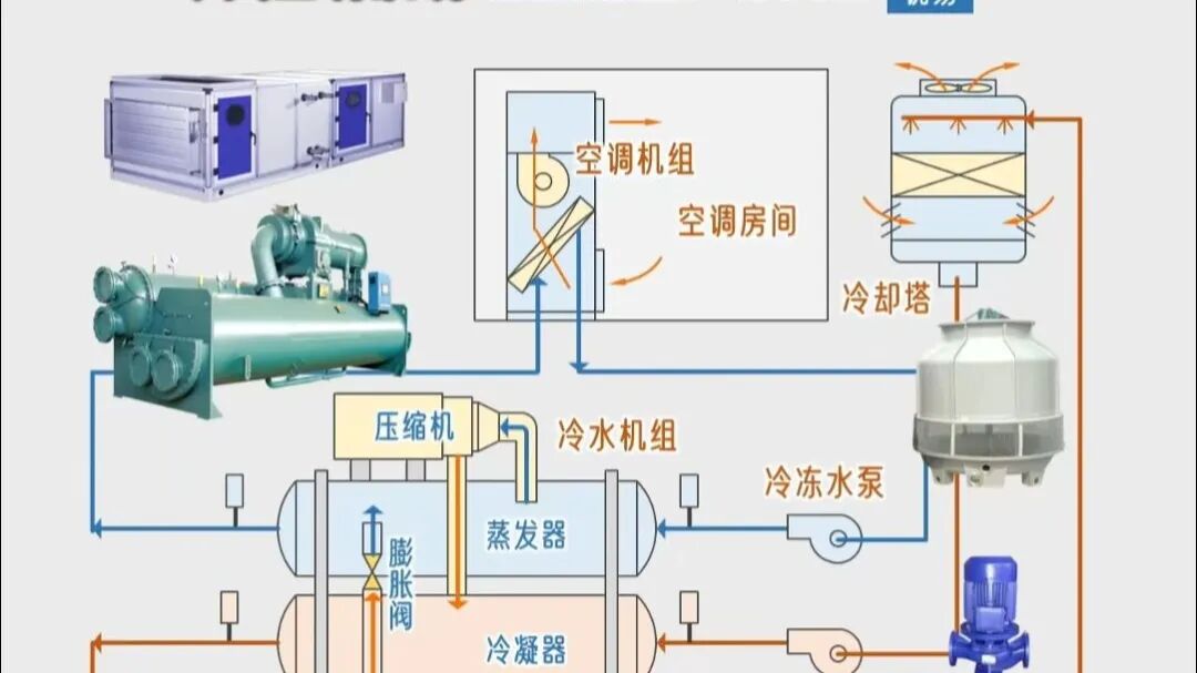 冷却循环水系统:由冷却水泵、冷凝器和冷却塔组成,负责将制冷过程中产生的热量排出室外。冷却水在冷凝器中吸收热量后,通过冷却塔与大气进行热交换。
