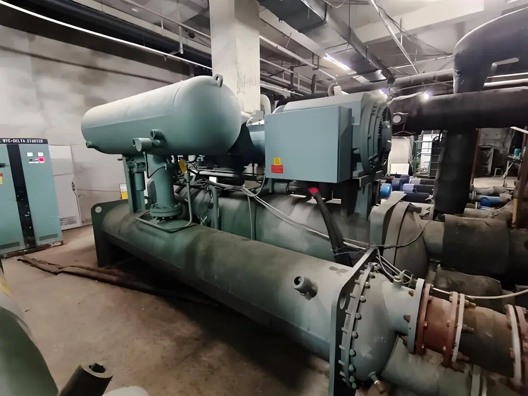 使用螺杆压缩机,水冷式设计,制冷量范围广(100~2000kW),运行稳定可靠。常见于中型商业建筑(如商场、工厂),能效比高,故障率低,是市场主流选择之一。