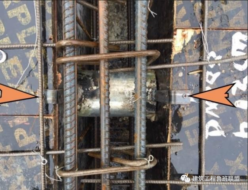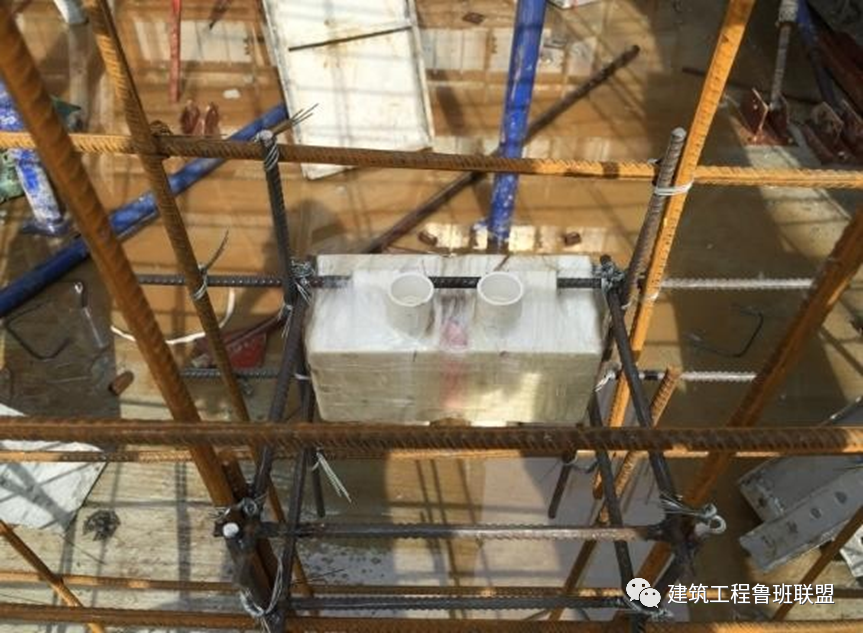 采用吊架固定方法,穿梁套管直接固定在模板上,保证浇筑后不偏位。