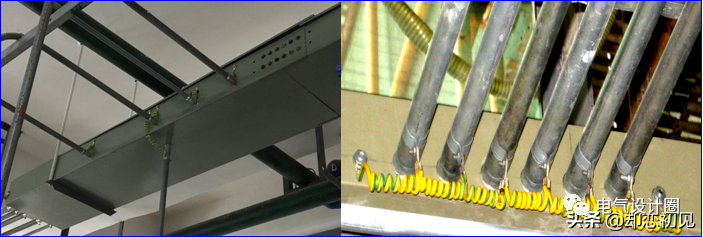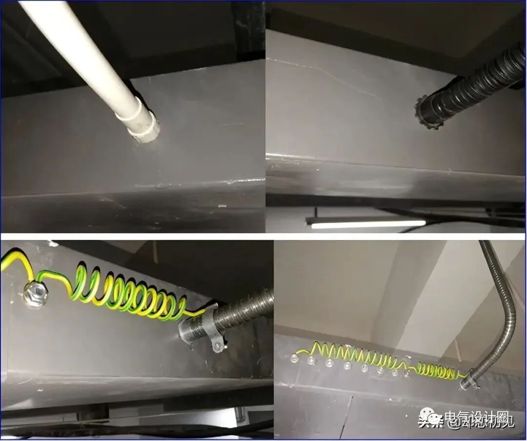 工艺要求:导管与桥架之间用锁母固定。钢管与桥架之间设接地跨接,多根管的接地跨接位置、导线长度、接地卡朝向统一。