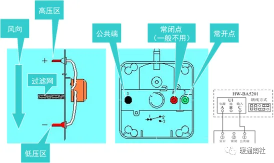 压差开关是用于探 测空气压力、空气压差的设备。在楼宇自控系统中,主要应用于风机的运行状态、过滤器的阻塞情况的监测。
