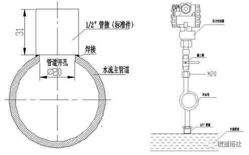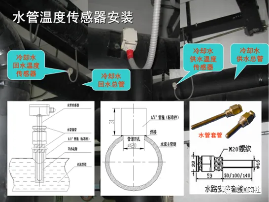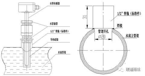 b)管道温度传感器、变送器安装于水管时,应有保护套,套内灌变压器油导热。(或导热硅脂)