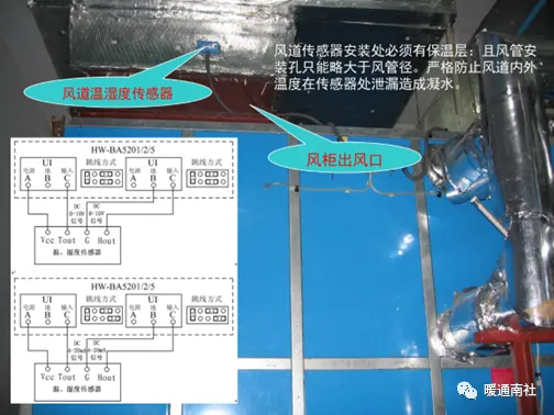 c)新回风温湿度传感器必须在阀前安装。测送风湿度时送风湿度传感器在尽量远离出风口的地方安装。