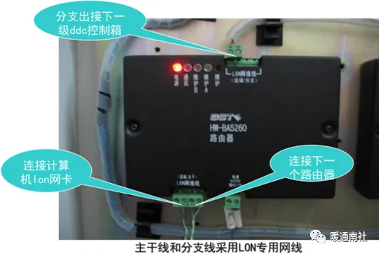 lon网线路:采用LON专用网线,穿管或经弱电电缆桥架引至现场控制箱,主干线路传输距离2700米,路由器分支传输距离2000米,工程应用应考虑现场情况,适当降低系统通讯距离。
