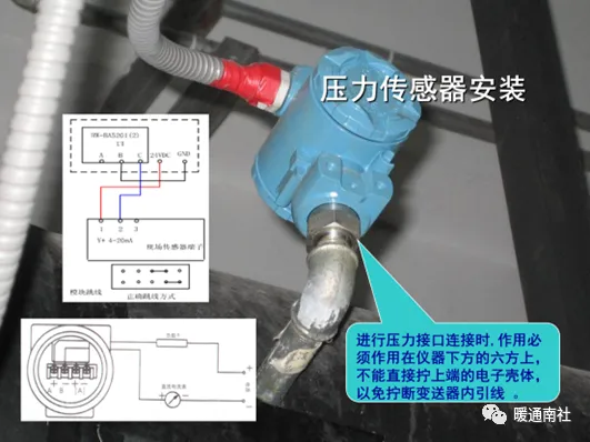 传感器阀门及执行器安装规范应按原系统设计安装于各自检测点,接线应护套金属软管。