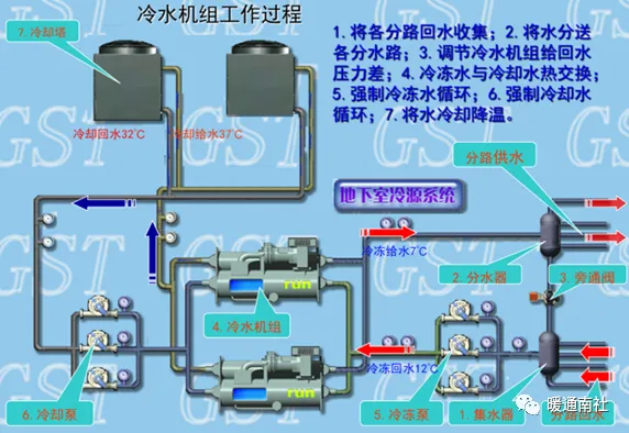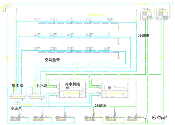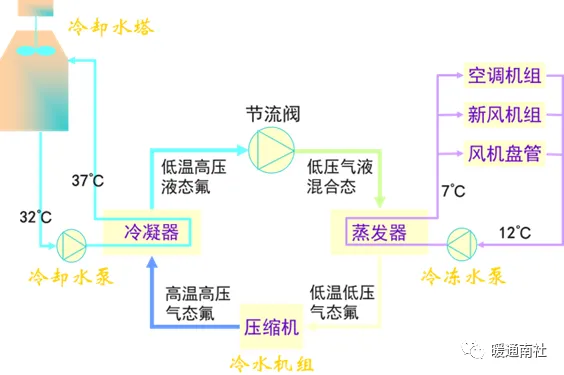 冷水机组系统的组成示意图: