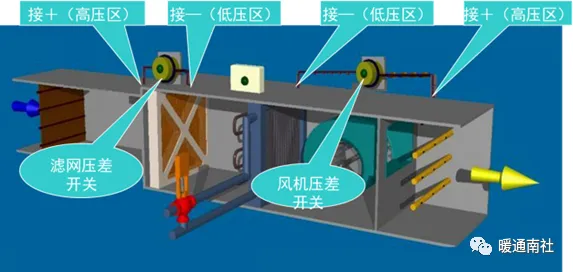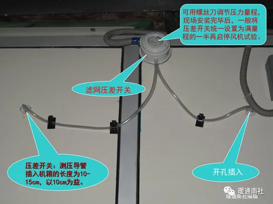 首先在机房现场查看空调新风机组的过滤网和风机的确切位置,确定空气管的开孔位置,进行安装,有的空调有多层过滤,根据实际调整位置及调整压力设置,滤网压差开关未脏时不应该动作,风机压差开关只在风机启动后动作。