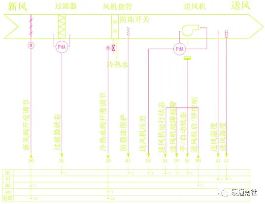 DI-数字量输入接口,即接触器触点、液位开关、压差开关、防冻开关的闭合与断开,一般用作检测设备运行状态、手自动状态,故障报警等。