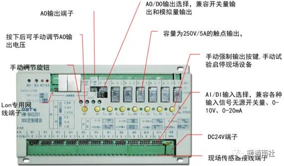 DDC控制器是以微处理机为基础的可编程直接数字控制器,对各种工业现场标准开关量信号与模拟量信号进行采集,并且对各种模拟量以及开关量设备进行控制。