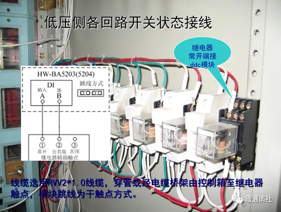模块跳线为干触点方式,线缆选用RVV2*1.0线缆,穿管或经电缆桥架由控制箱至现场配电柜。