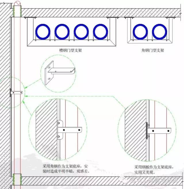1、支架制作时采用钢板作为支架的底座,在安装时不会造成支架底座在刷粉或装饰面产生半明半暗现象。