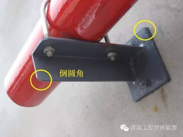 2、门型支架在900转角时,采用450倒角拼焊而且在型钢割900角时不要割透,采用气焊进行整体转角,然后用电焊进行拼缝焊接。