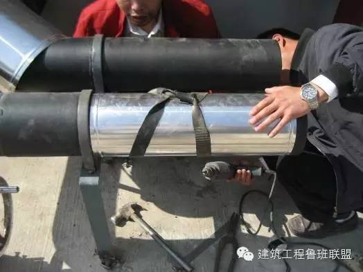 2、垂直管道保温接口处, 外包一层100~150mm宽相同保温层,以提高接口处保 温的薄弱环节。