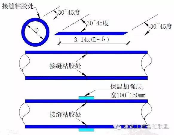 1、将顺着管道方向保温板接口由原来的900改为,采用300~450裁口粘胶连接,从而提高粘胶接触面1.4~2倍。