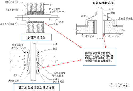 1、套管管径应比穿墙板的干管、立管管径大1~2号。
