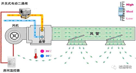 其工作原理是机组内不断的再循环所在房间的空气,使空气通过冷水(热水)盘管后被冷却(加热),以保持房间温度的恒定。